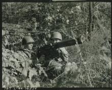 1697. '9 Oct 44. DuTiel. 30 Cal machine gun set up for action by the 5th Inf Regt at Ft. Benning, Ga. 168-L-44-16418.'...