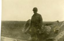 MacFarland near the cannon of a German tank in Germany in 1945