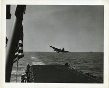 Torpedo bomber attempting to land on the flight deck of an aircraft carrier. "File No: 2391: 101 photos. For release...