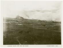 Aerial view of landing craft invading Iwo Jima. Official caption:'"Landing boats off Iwo on D-Day. US Navy Photo 122-20...