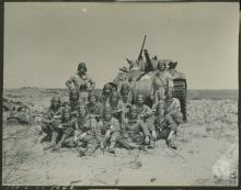 971. Group portrait of Sherman tank crew during training exercises. '3-28-44. Griggs. Co A 710th tank Bn. Camp Cooke,...