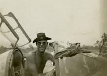 O'Neill in the cockpit of a Lockheed P-38 Lightning. "Me in the cockpit of a P-38, the new style zoot suit hat I have...