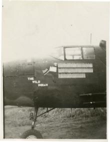 Nose art of the B-25 The Wild Indian at an unknown location