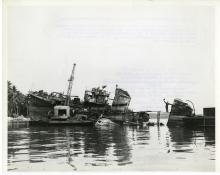Unidentified docked naval ship, probably on Tinian in late 1945 or early 1946