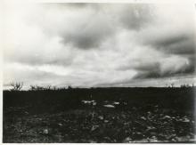 Wrecked landing craft, possibly American, on a beach on Iwo Jima, 1945-46