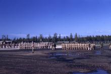 Slide. Canadian, British, and American service men and women lined up for a review on a European air base. Location...