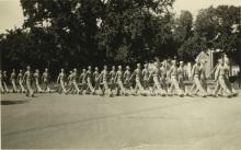 US servicemen during training, probably marching to a class in the United States during World War II